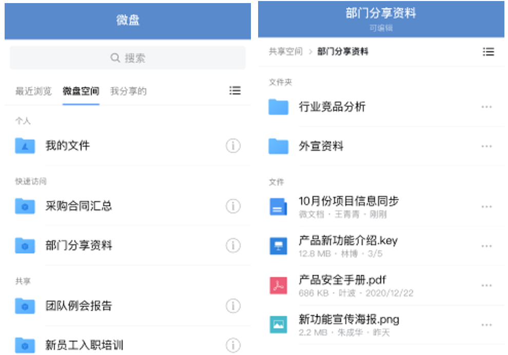 3、团队协作:微盘支持多人在线协作,团队成员可以同时对同一文件进行编辑和评论,提高团队协作效率。