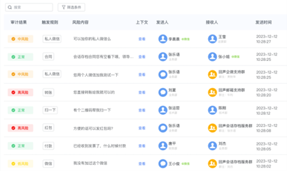 企业还可以通过【消息审计】功能对聊天记录进行审计,检索关键词或特定时间段内的沟通记录,以便于解决争议或进行服务质量评估。